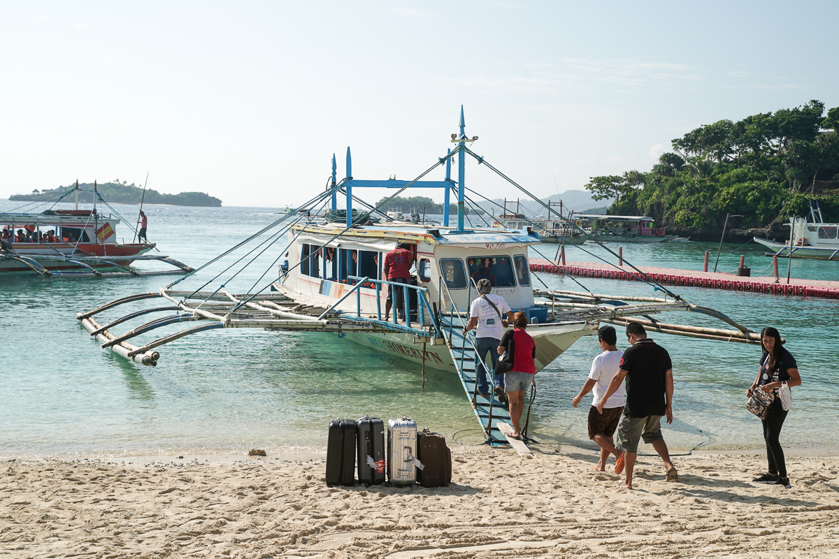 2つの空港があるパナイ島からボラカイ島へは船で移動します。島と島の間に橋などはかかっていません。この不便さがボラカイ島の環境維持に役立っています。カティクラン桟橋港からボラカイ島の港までは約15分の船旅になります。島間を航行する船は小さな船です。風向きや波の高さによって停泊する桟橋は変わる可能性があります。スーツケースなどの荷物は人力で船上へ運び上げます。