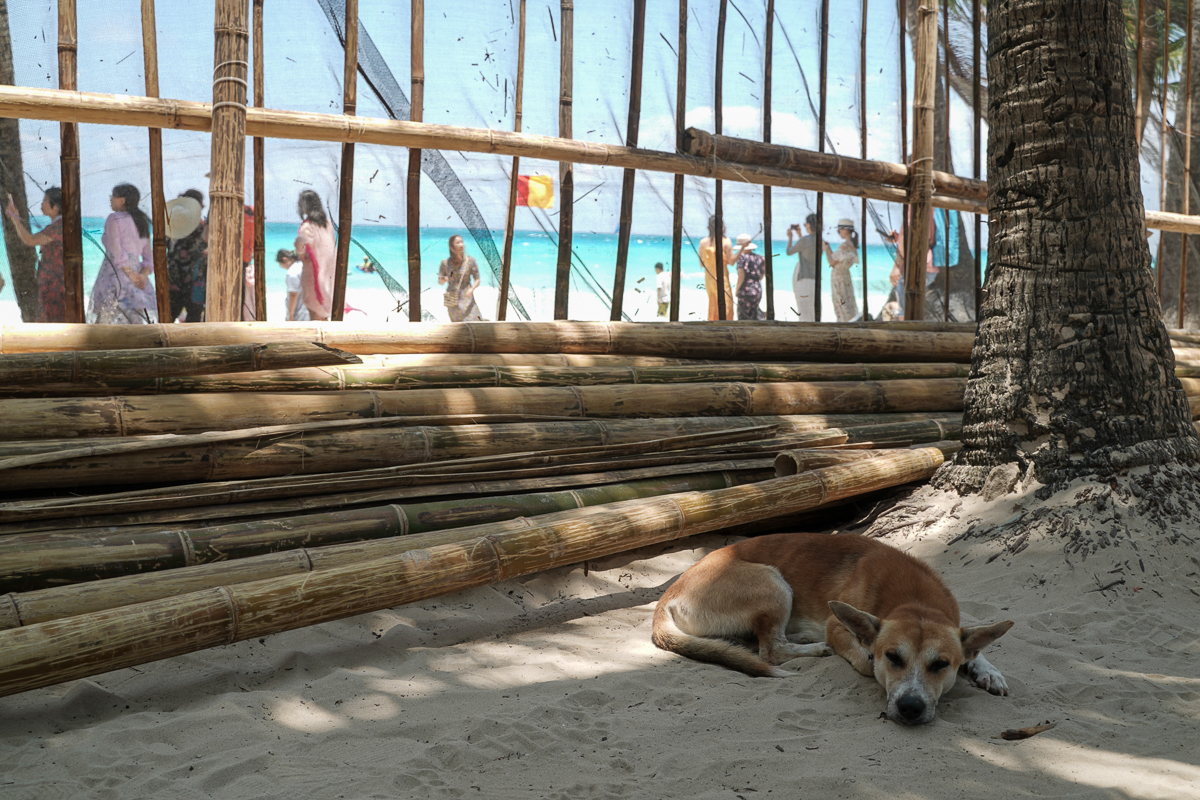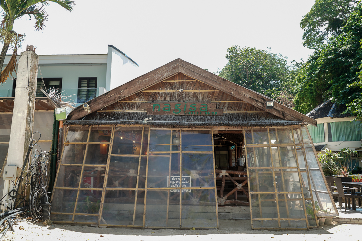 雨季にあたる6月から9月は、西南方向から強い季節風がホワイトビーチ方向に吹き付けます。強い風の影響で目の細かいビーチの白砂が建物の中に舞い込むため、ビーチ沿いの施設はみな風除け(砂除け)のネットやパティションを張り巡らせます。
